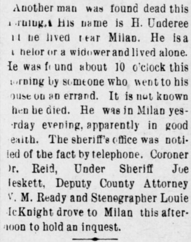 Near Milan, Kansas, on Thursday, June 22, 1899, occurred the death from
