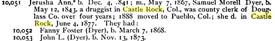 In 1885 Castle Rock, Douglas County, Colorado Fannie F. Dyer is 17, with