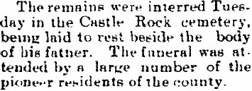 to Castle Rock to be present at the interment here."