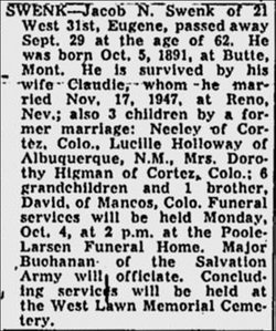 In October, 1929, he married Sarah Elizabeth Jenney of Woodburn, Oregon,