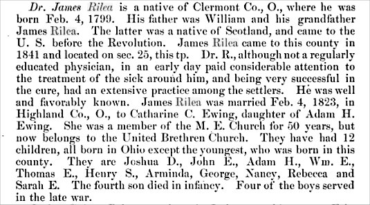 In 1880 CHENOA Illinois - like the Kirkpatrick next to him in Logan County - Thomas "Riley" is 46, a laborer, with wife Samantha 40, with George 15 and Clara 11.