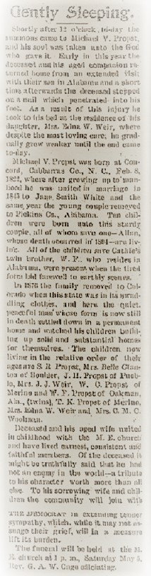 January 1900 "Sidney Propst yesterday walked in Justice Pickens'