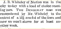 1900 "The Schneider garden has supplied Sterling with vegetables for several years and J.B. Whiteley has opened up another one equally as good."
