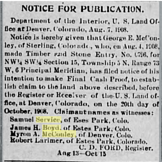 March 5, 1903 Estes Park "James Boyd is now a resident of the park."