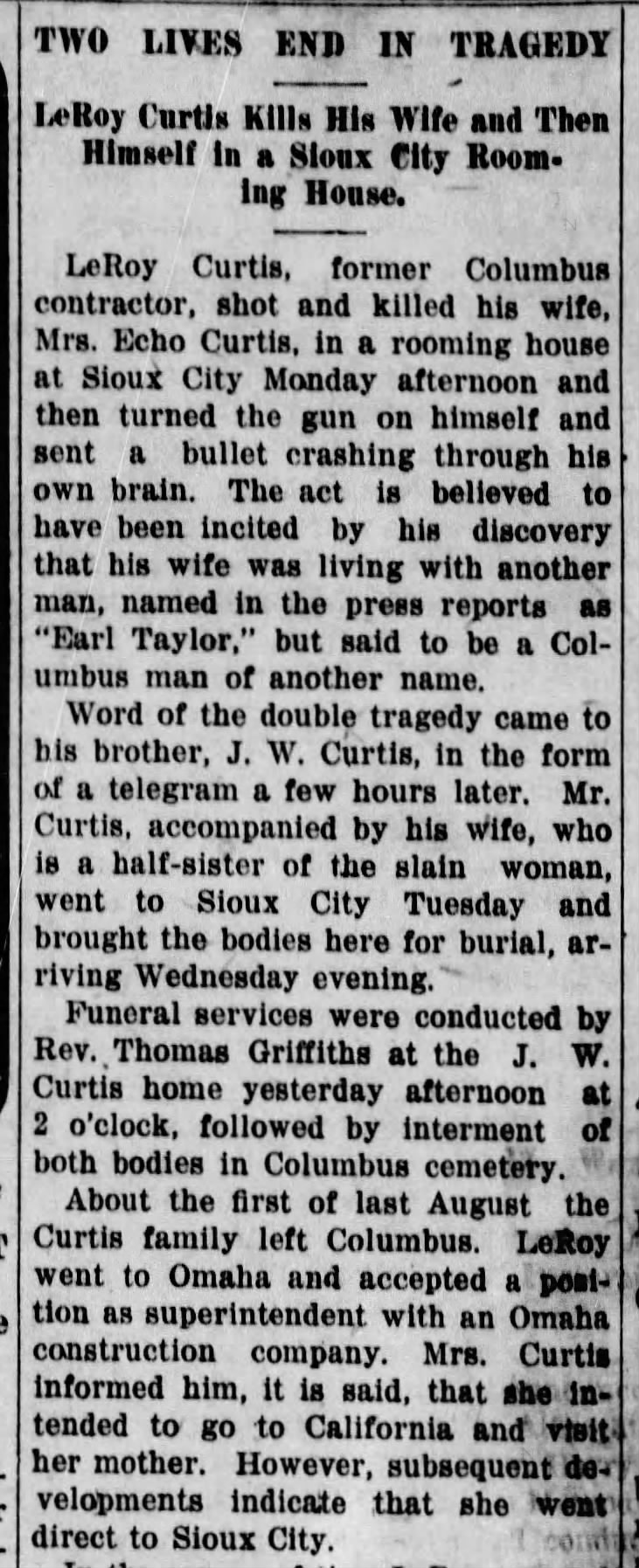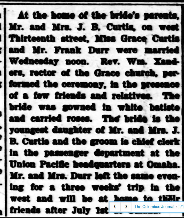 January 1890 "Miss Nettie Curtis and her sister, Mrs. Boyd, left for their home in Omaha last Saturday evening."