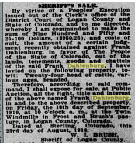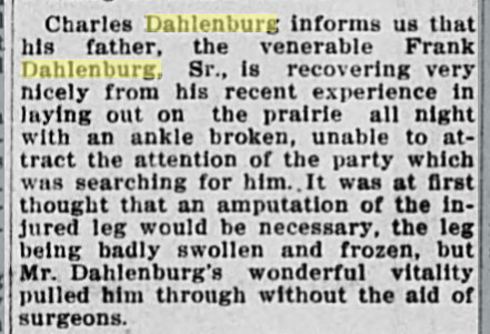 The Julesburg newspaper said it was Frank Dahlenberg, and " Mr. Dahlenberg is in a