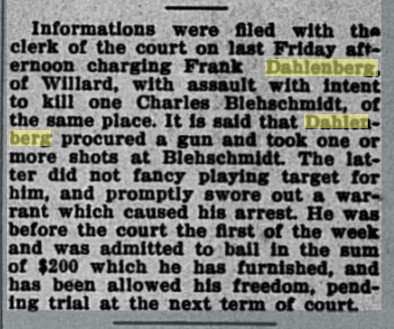 July 1924 Willard items "Charles Dahlenberg has rented the