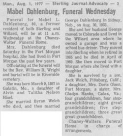 September 16, 1948 Curtis, Nebraska "Frank M. Dahlenburg, 81, died at his home in
