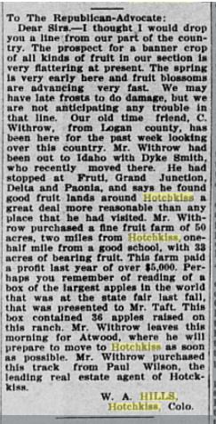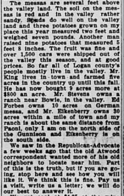 March 1886 "The Abilene excursionists arrived at Atwood recently.