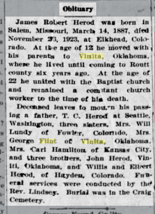 Edwin Larkin Flint registered for WWI in Willard, born October 3, 1883, farming by himself. His reference was Robert L. Flint , also of WIllard.