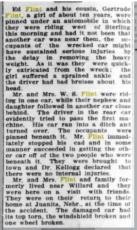 August 1918 Willard items "Mr. and Mrs. Larkin Flint were seen on Sterling streets Wedesday."