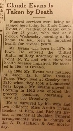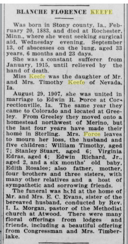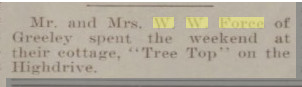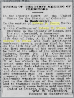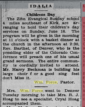 October 1908 Sterling, Colorado "Rev. William M. Force, who had been visiting his children at Greeley