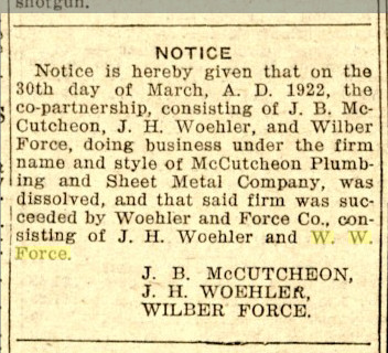 "Auther" H. Force claimed a quarter in section 22, 7N 54W in February 1908.