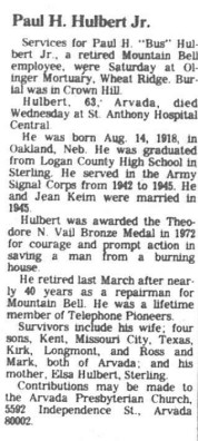 Richard Wallace Keim, born 31 Aug 1924 in Denver, died 12 Jan 2004