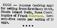 August 1915 "Lafayette - Frank Kulovany, 46, a Bohemian miner, committed suicide