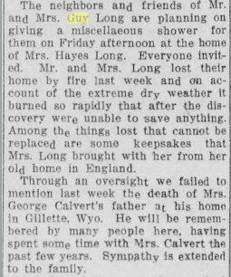March 1916 "Mr. and Mrs. Curtis Page returned from Denver last week and are visiting with Mrs. Page’s parents, Mr. and j Mrs. H. V. Long."