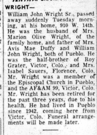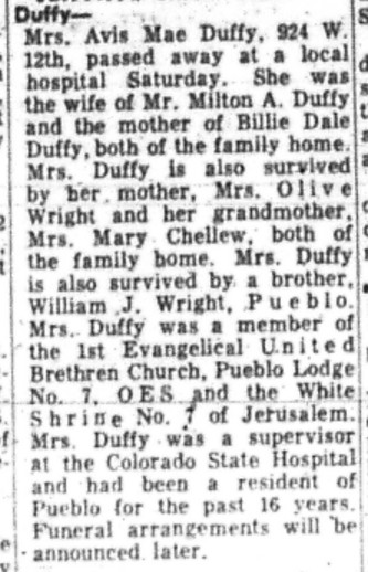 THANKS TO THE PUEBLO COUNTY LIBRARY FOR THE OBITUARIES.