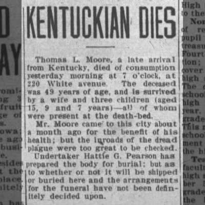 Thomas L. Moore is a carpenter, born February 1868 in Kentucky,