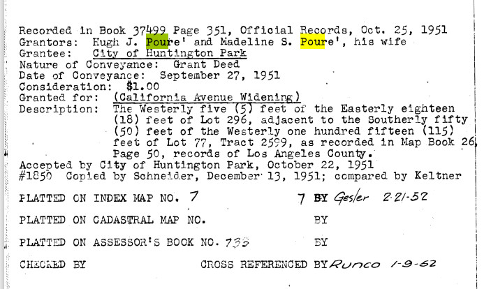 In 1950 Los Angeles, Hugh J. Poure is 47, married, a block maker for an aircraft manufacturing company.
