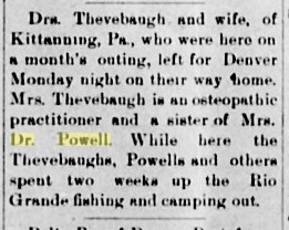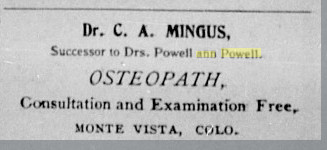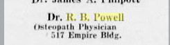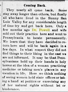 August 1924 " Dr. R. B. Powell of Denver has been spending a few davs in Monte Vista this week renewing old acquaintances Dr. Powell formerly practiced in Monte Vista,"