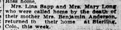 1917 "Mrs. Lina Sapp is in Sterling today on legal business. "
