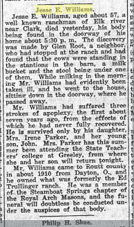 In 1905 Jesse E. Williams claimed 80 acres in 21S 57W, Parkdale, Crowley County, Colorado.