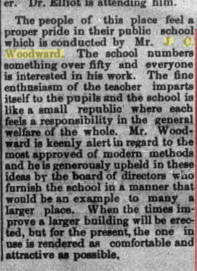 October 1900 "Dr. J. C. Woodward has completed his medical course in the Denver university
