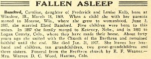 Nellie Ruth Bamford was born Aug 24, 1886 in Clarno, Green County, Wisconsin