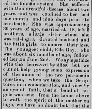 Oldest child, Mrs. Rebecca Doughten died Gentry Co., MO. July 6, 1886;