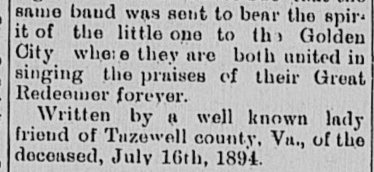 Burke's Garden and moved here in the ??'s takes both papers, and sent some to me here