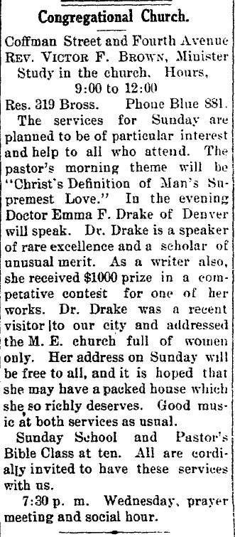 Possible: Emma F. H. Drake, born Sept 1849 in New York, a physician, married to Ellis R. Drake , a clergyman, in 1900 Denver. They have Ruth A. Dec 1884, Philip B. May 1886 both Massachusetts, and Paul M. July 1891 Kansas, and niece Bessie E. Powell Jun 1881 Michigan.