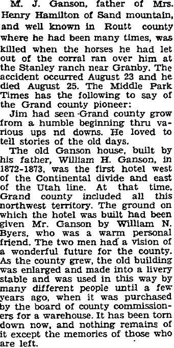 James Ganson is buried, per FindaGrave 21949756, in Hot Sulphur Springs, Colorado.