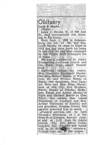 Another Louis Menke was born Jan 29, 1863 in Chicago Illinois, and was in Kane County in 1880 with his parents. Louis Menke and Dorothea Moeller, both born in Germany.