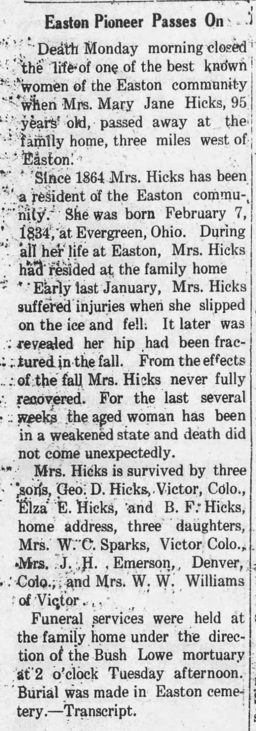 July 1929 Winchester, Kansas - Death was July 1.
