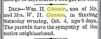 May 1908 "Mr. and Mrs. W. H. Gleason enjoyed a visit for several