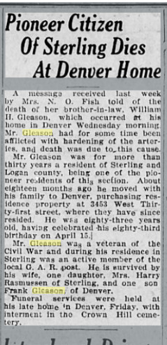 October 1898 Sterling "W. H. Gleason went to Fort Collins this