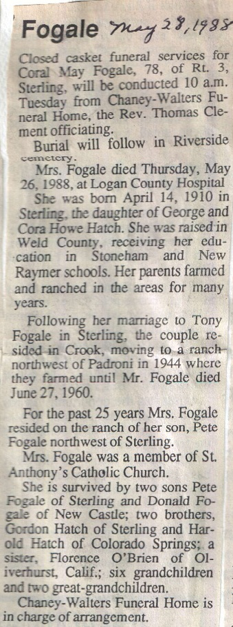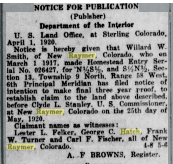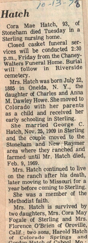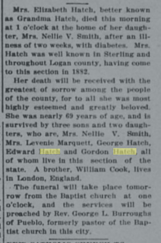 June 1917 " Gordon Hatch and wife left this morning for Fort Morgan to visit with