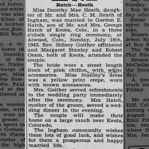 and ushers were ... Hatch and Jon Roline. Mrs. Thurman Muir was soloist and
