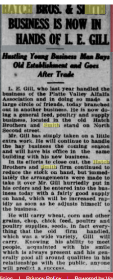 for after several years in the grain business known as Hatch Bros, and Smith,