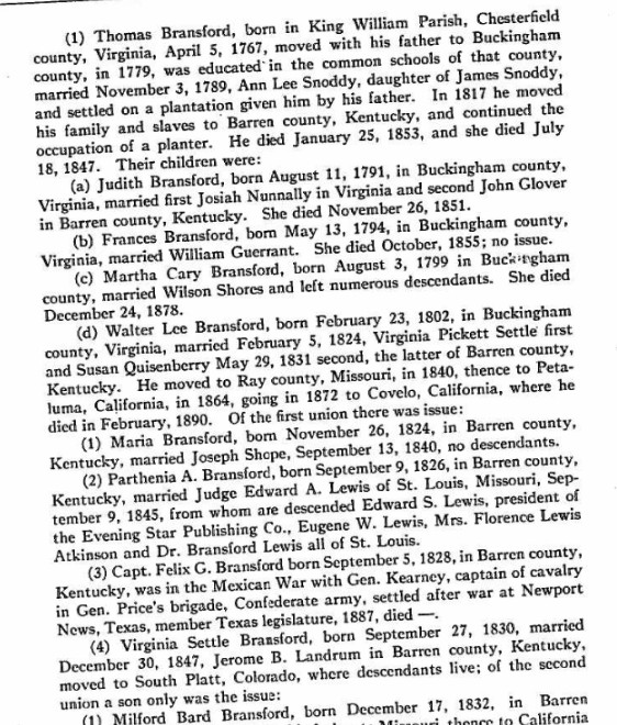Walter Bransford is in Barren County, Kentucky in 1840.