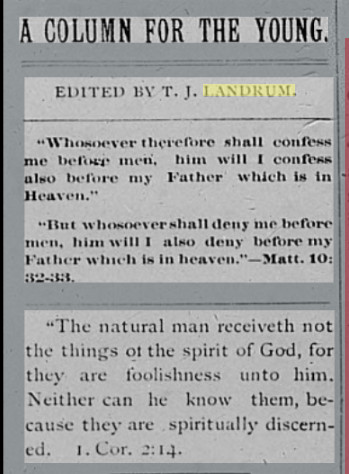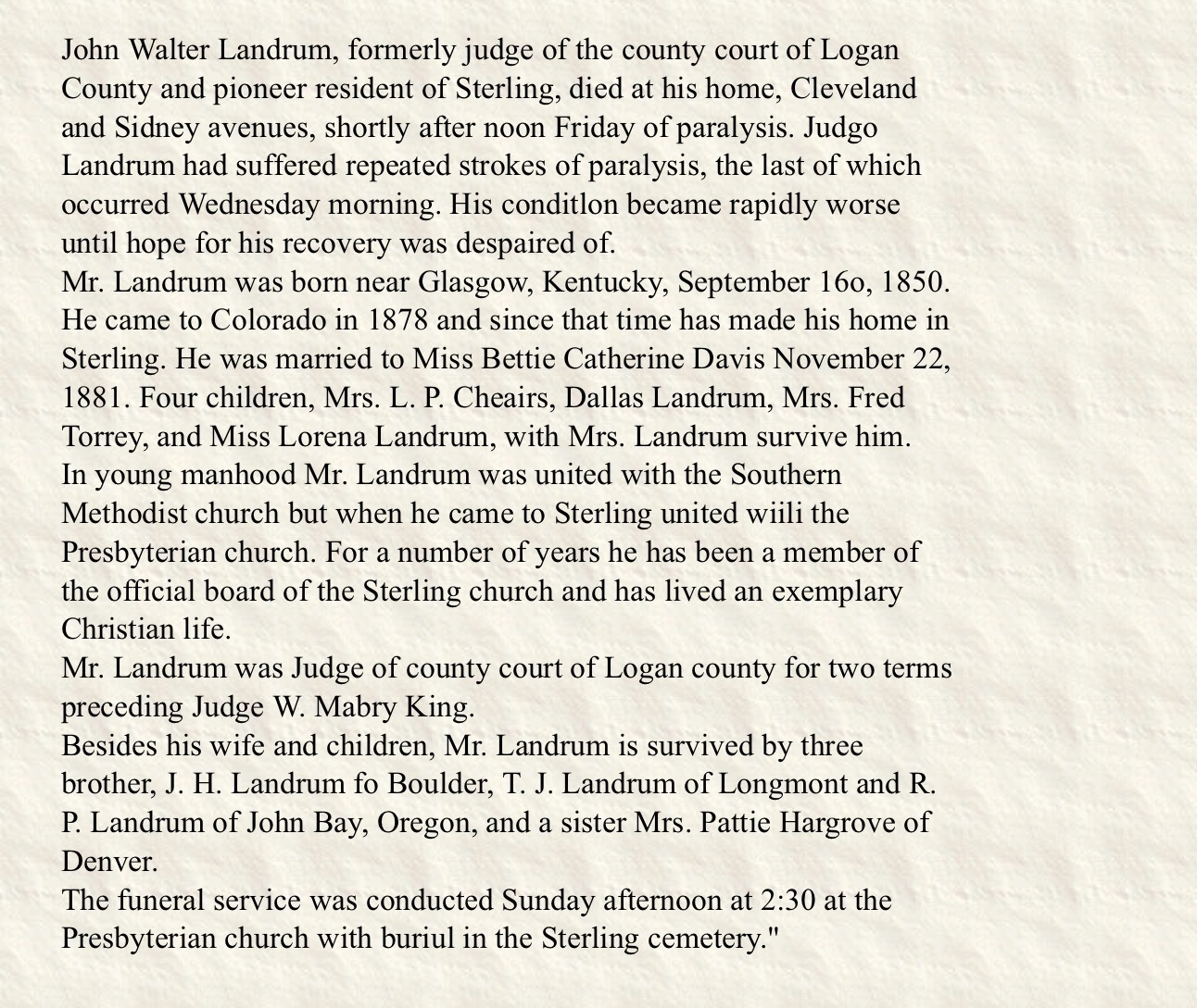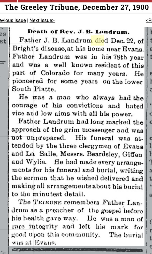 October 1890 Saguache, Colorado "Robert P. Landrum submitted final proof on his land claim on Saturday. ."
