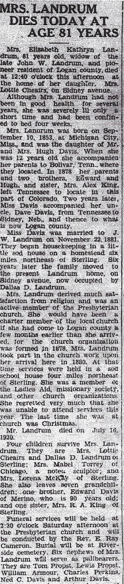 May 1908 Julesburg "R. P. Landrum is in Oregon