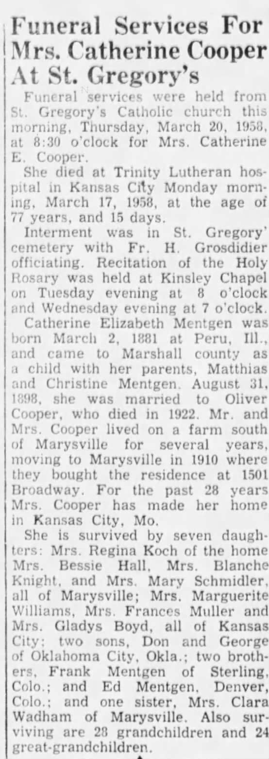 To Mr. and Mrs. Mentgen were born seven children, five sons and two