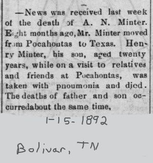 Miss L. L. Garrett and A. N. Minter married on 18 Jul 1867 in Tippah County, Mississippi.