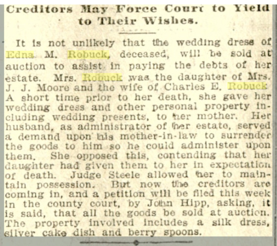 S. V. Robuck and Lola Carter married on 17 Jun 1913
