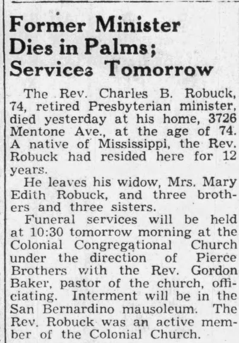 Jesse D. Robuck, born 27 Mar 1917, died in Feb 1967.