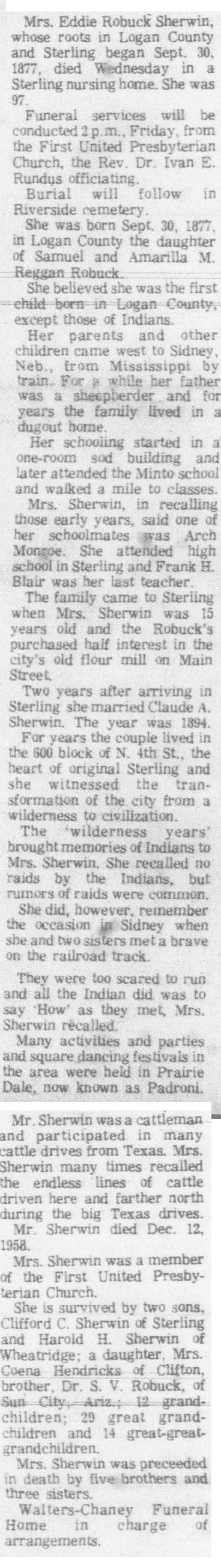 The 1885 census has S.B. Robuck farming, 54, A.M. 39, Mattie 17, Lenora 14, Chas. 13, Gatha 11, , all kids born in Mississippi, Eddie 9, Henry 7, Jessie 5, and Shirley 3, all four born in Colorado.