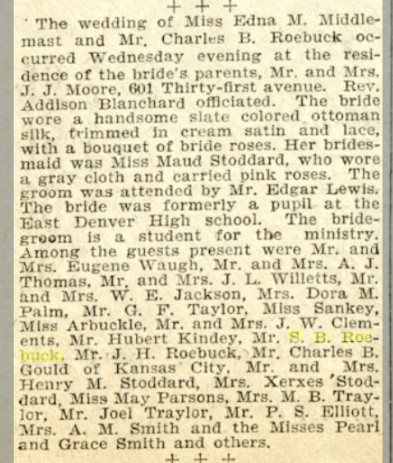 September 1889 "S. B. Roebuck had the misfortune to lose