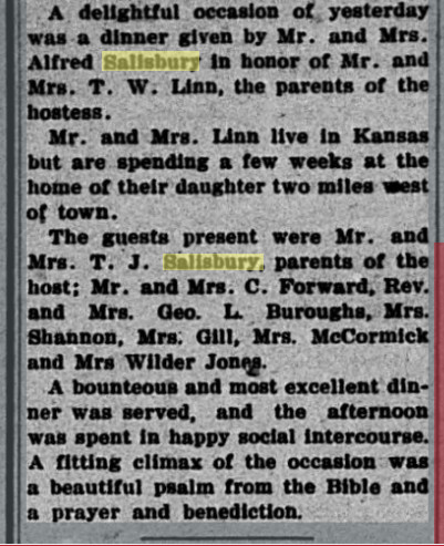 December 1908 "Alfred Salisbury is building a good residence of cement blocks on his farm just west of town."