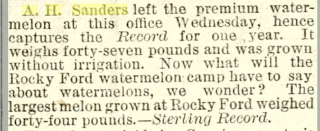 A.H. also had the best winter squash at the Logan County Fair in 1889.